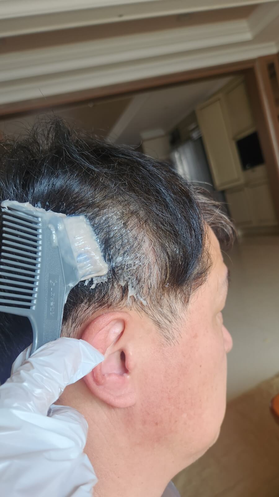 새치가 심한 옆쪽부터 꼼꼼히 바르고 헤어팩을 덮어줬어요.